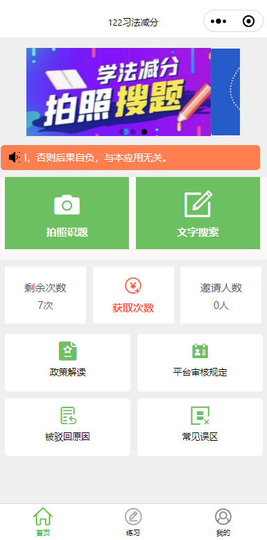 为驾驶证车主提供学法减分的考前练习、模拟考试和学习解答搜题等,是学法减分的好帮手